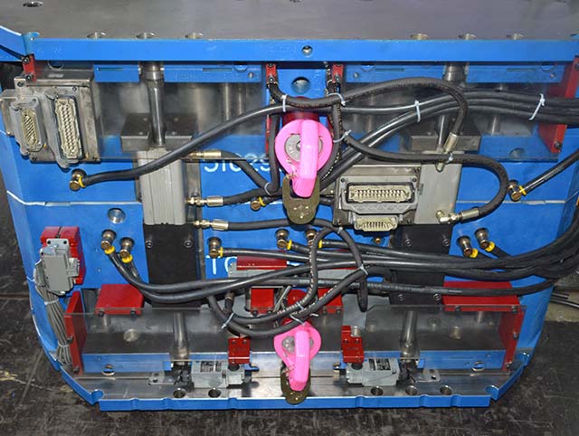 BMW end cap 1000T大型雙色模具,前模頂出需要開模同時沿分型面頂出,合模需要分型面推前模頂出系統(tǒng)回位,經(jīng)過我們工程團隊前期跟客人提出的有效建議對產(chǎn)品的優(yōu)化,結(jié)果模具試模一次成功。