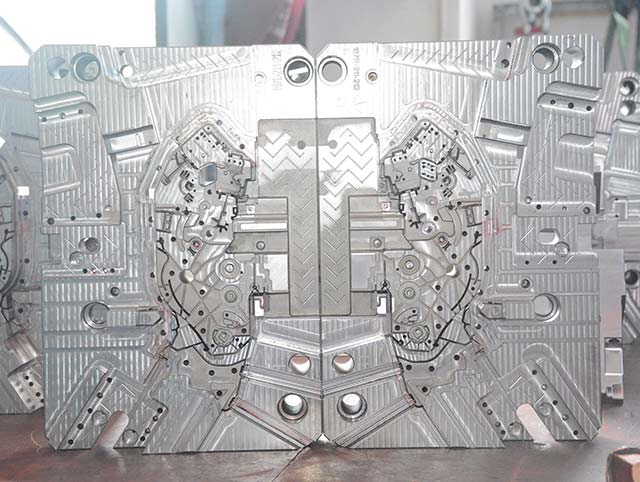 BMW end cap 1000T大型雙色模具,前模頂出需要開模同時沿分型面頂出,合模需要分型面推前模頂出系統(tǒng)回位,經(jīng)過我們工程團隊前期跟客人提出的有效建議對產(chǎn)品的優(yōu)化,結(jié)果模具試模一次成功。